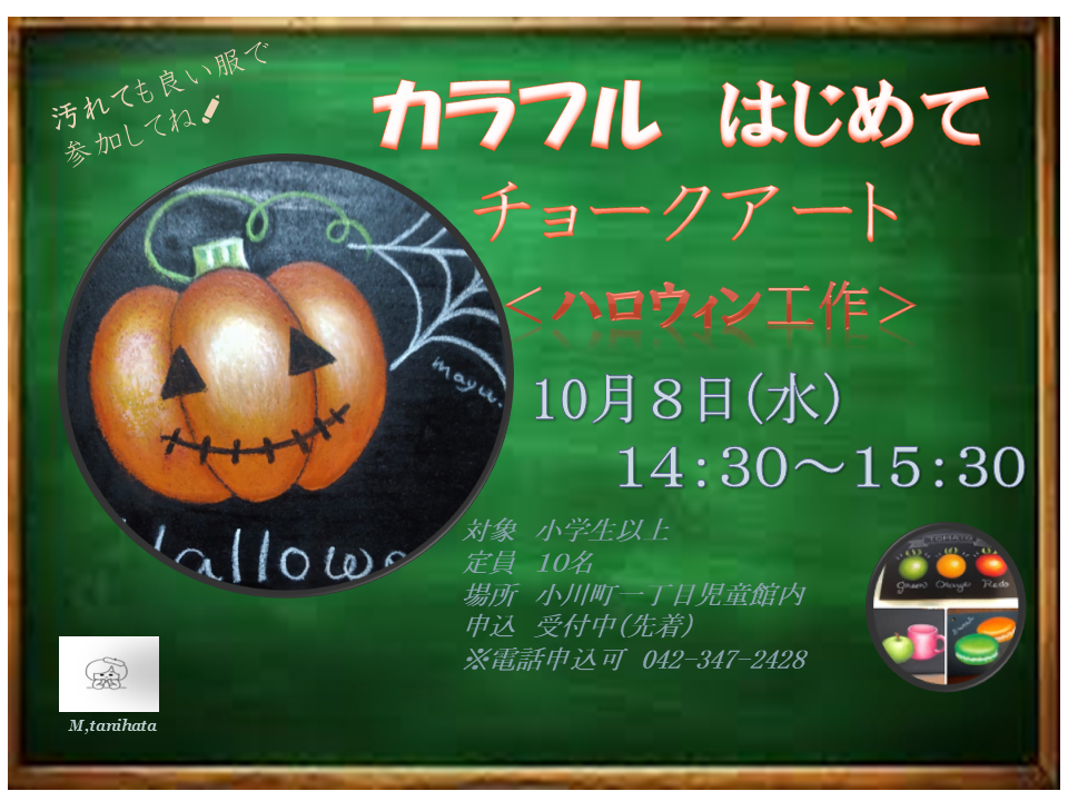 小川町一丁目児童館でハロウィンをテーマに、カラフルなチョークアートをつくりましょう!