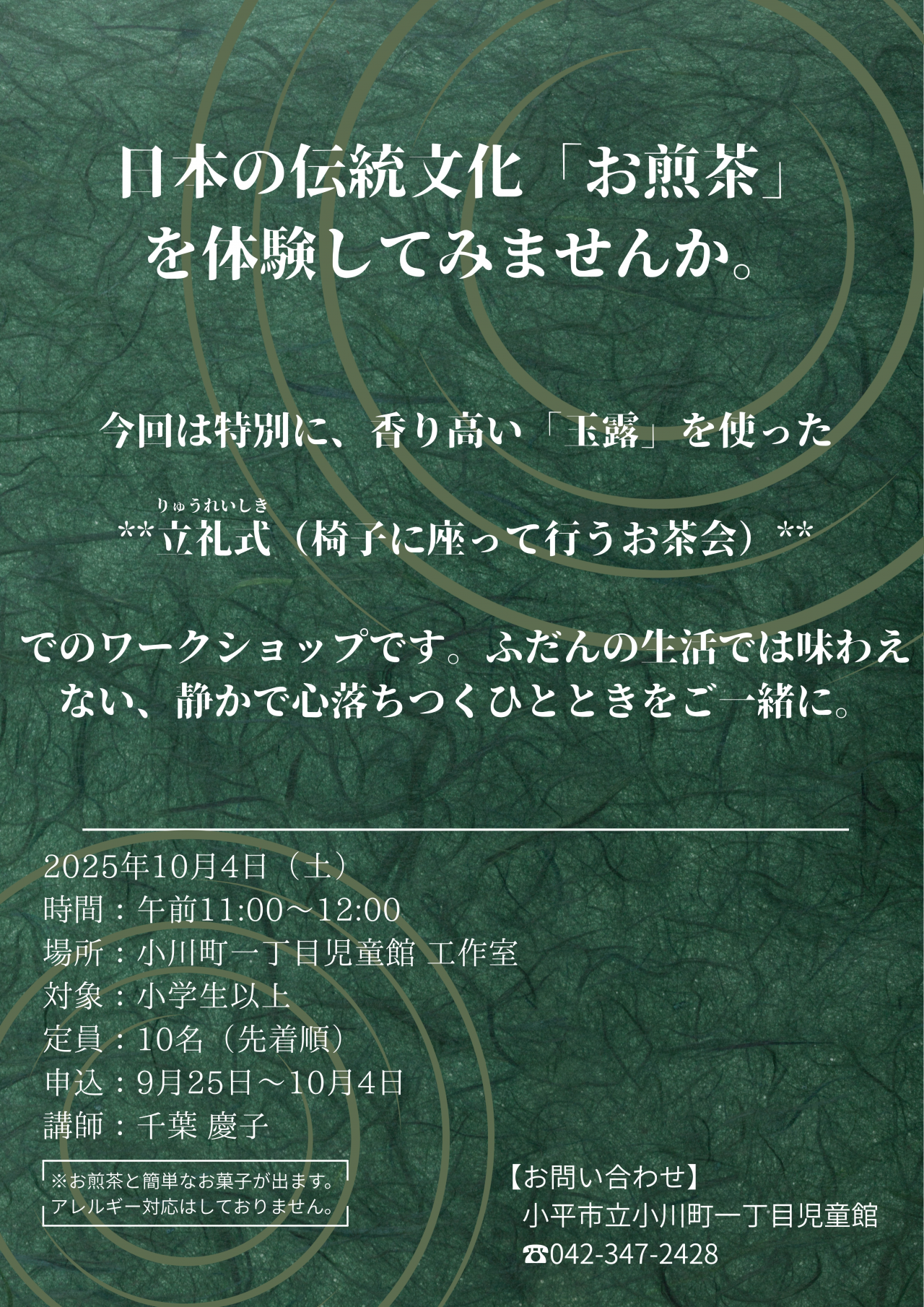 小川町一丁目児童館で、日本の伝統文化「お煎茶」を体験してみませんか。